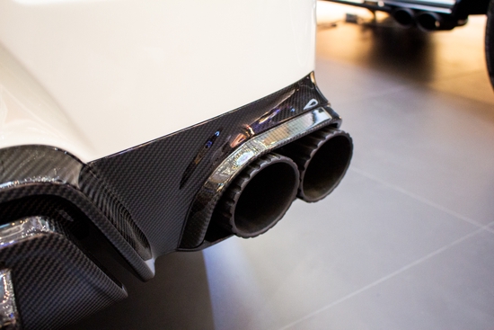具体细节展示:保险杠、后置扩散器、顶部扰流板、尾灯罩等均进行了T200干式碳纤维材料打磨,华丽而附有性能气质!