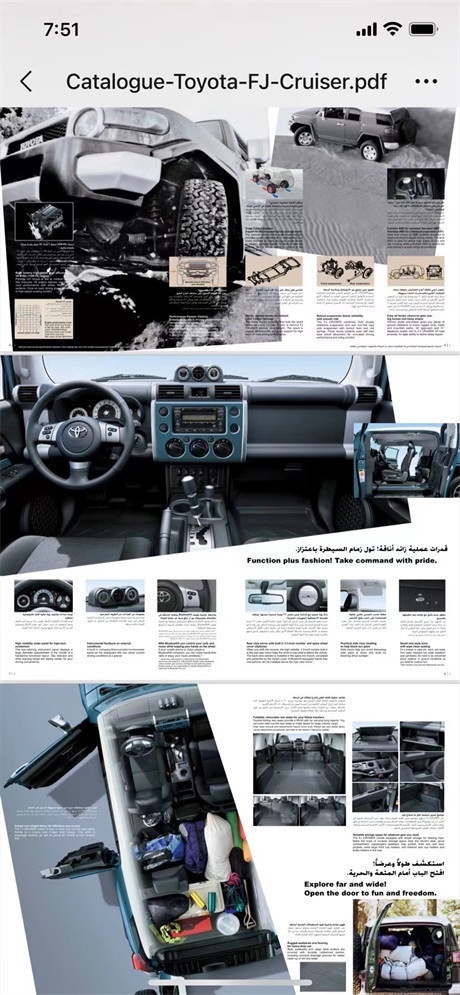 2022款丰田FJ酷路泽内饰适用而简练。门把手、门内把手,以及音响的按钮,均应用了加大,即使戴脱手套也能很方便地使用;而采取橡胶类的地板垫原料、防水且透气性良好的座椅规划,易于清洁,让驾乘者保持心境愉悦。FJ酷路泽接纳对开门筹划,这样不会明显影响后排乘员的出入,又能确保车身的刚性,并给FJ带来时尚的玩味感。