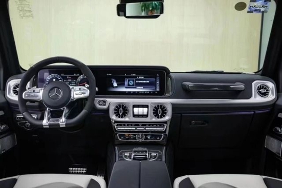 2:22款奔驰G (配置|询价)63豪华精致的真皮包覆提供了足够的舒适性和支撑性,通风和加热功能让乘客免受高温和寒冷的煎熬。中控台多处均采用碳纤维材料覆盖,带彩色TFT显示屏的AMG仪表盘、AMG主菜单和单独的挡位显示器以及采用白色照明的AMG门槛。名贵的选材及精湛的内装令人拍案叫绝。
