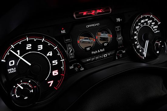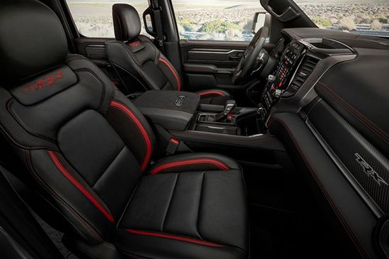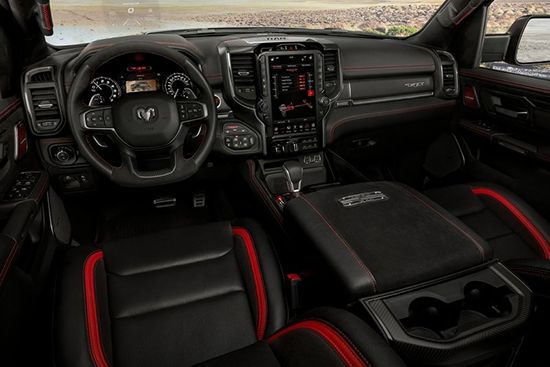 新车在内饰部分进一步强化了其高性能版本的形象,中控台和座椅随处可见的TRX标识便是最好的例证。同时,作为道奇Ram(参数|图片)家族的旗舰车型,新车还配备了12英寸竖置中控屏幕,除了支持蓝牙、导航和车载Wi-Fi等常见功能,还支持Apple CarPlay和Android Auto手机映射。