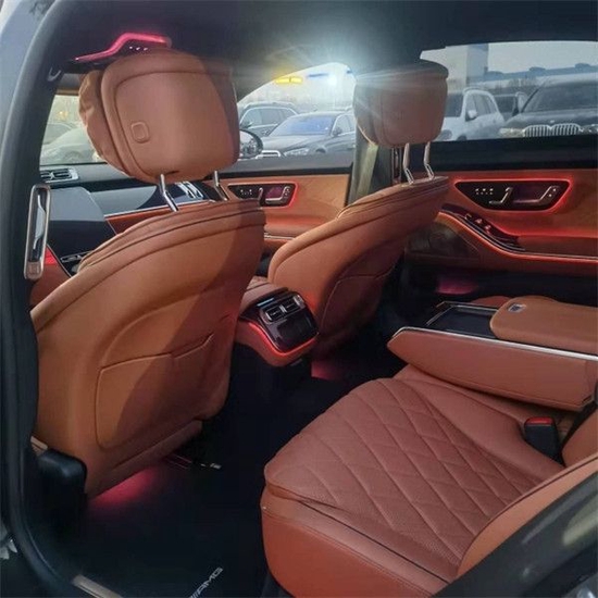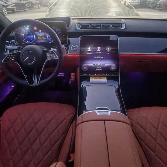 22款奔驰S500内饰设计就像一座移动的总统套房,相当的豪华。中控部分搭载了双屏设计,12.8英寸的中控大屏以及12.3英寸的悬浮式行车电脑屏,配上米色的内饰设计,颜值感很出众。此外,车内还使用了HUD投影显示以及高亮的钢琴烤漆面板,将科技感与时尚感结合得相当到位。