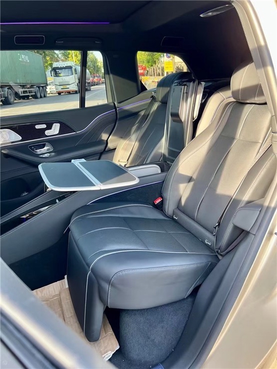 迈巴赫GLS600 (配置|询价)提供四座布局,四座车型第二排独立座椅相比普通版GLS更加靠后,并且带有巨大的腿托,其后排座椅最大倾斜角度达43.5度,后排腿部空间最大达1.34米。中央由冰箱、控制台、储物空间和手机无线充电台等进行贯穿,呈现出类似于迈巴赫S级 (配置|询价)一样的头等舱设计。