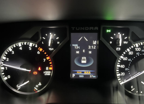 丰田坦途的内饰设计也采用了新设计风格,“硬”还是第一感受。无论是平直的线条还是灰白的用料配色,车内的风格都是非常偏向于越野,宽大的悬浮式液晶中控屏幕也是挺抢眼的,根据不同配置也将提供有8英寸以及14英寸的不同配置,就是这个感觉还是很像“大彩电”,只是放在这台车上会显得更协调一些,功能上也丰富了在线车联网以及CarPlay车机互联功能。