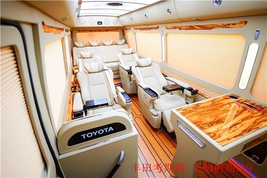 既不会占用车内的空间,还能够在一定成度上提高内饰的豪华感。丰田考斯特12座商务车,在改装的过程中不仅仅注意车内的美观和尊贵,更急考虑了乘驾人员对于舒适性和实用性的追求。丰田考斯特12座改装商务车在驾驶席的改装上可以采用加大加厚加宽加扶手的改装设计。丰田考斯特12座改装商务车在内饰乘客席的选择上,可以采用真皮座椅,也可以增加360度可旋转的好空首长席座椅。舒适的座椅再配备高档的办公桌,丰田考斯特12座改装商务车,丰田考斯特商务车的根本配置丰富,设计低调,所以在改装方面丰田考斯特就增加了很多细节,这些细节的设计恰正是丰田考斯特改装商务车的怪异和尊贵的表现。在表面细节上丰田考斯特改装商务车增加了车身的彩色。