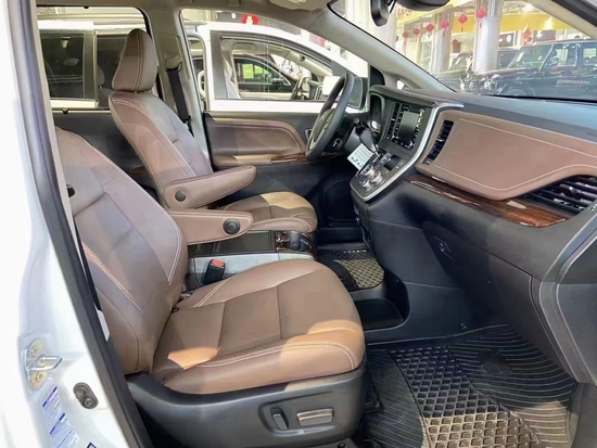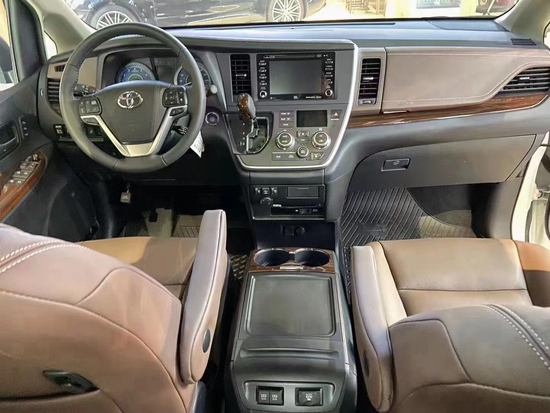 20款丰田塞纳四驱LTD的内饰:桃木镶嵌的中控台更显格调高雅,方向盘集成多种功能,操作便利。方向盘集成多种功能,操作便利减少对安全的影响并且带有语音控制。