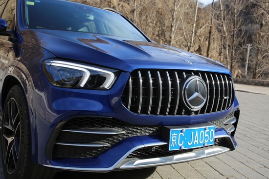 GLE53 4MATIC+表面看似平淡无奇,但稍加观察你就会发现它并不好惹。其中车头换装了带有AMG角标的专属镀铬直瀑式格栅,还有一个比我的脑袋都大的3D奔驰LOGO,这使它比普通版更显霸气且质感十足,同时也彰显了它身为AMG车型的独特之处。