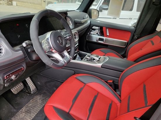 22款奔驰G63AMG二排空间也是相当够用了,第二排腿部间隙1003MM,二排头部间隙1029MM,二排肩部间隙1458MM,新款内饰配置环境氛围照明系统,共提供64种颜色的氛围灯,能给您带来丰富多彩的空间氛围,无论流光溢彩还是柔和优雅,皆可根据您的喜好或心情营造惬意环境。G63方盒子的车身造型粗犷硬朗,前脸直瀑式的中网非常大气,两侧是圆形的几何多光束MULTIBEAM LED大灯,照明效果绝对出色。