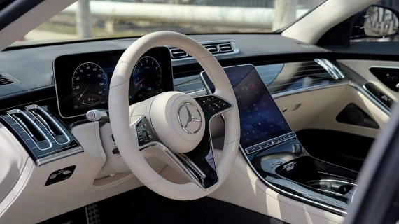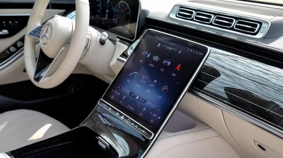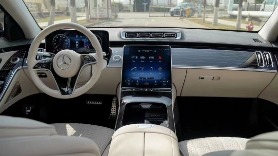 奔驰S500内饰设计就像一座移动的总统套房,相当的豪华。中控部分搭载了双屏设计,12.8英寸的中控大屏以及12.3英寸的悬浮式行车电脑屏,配上米色的内饰设计,颜值感很出众。此外,车内还使用了HUD投影显示以及高亮的钢琴烤漆面板,将科技感与时尚感结合得相当到位。