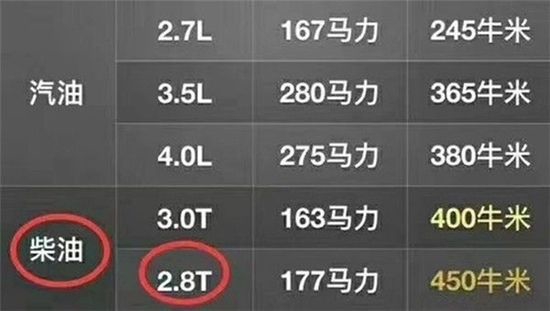 区别四:2.8T综合油耗8.5升,3.0T综合是9.5升。