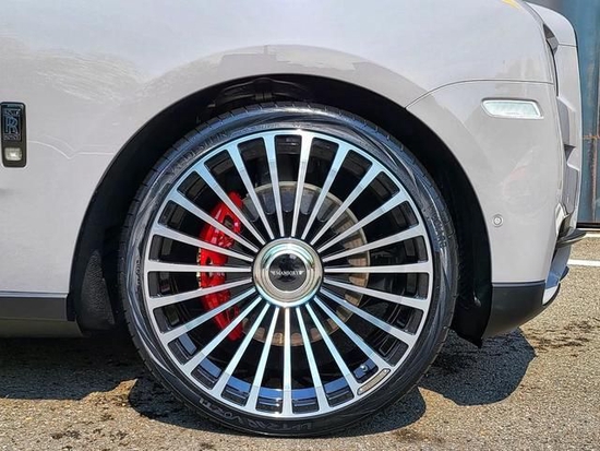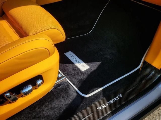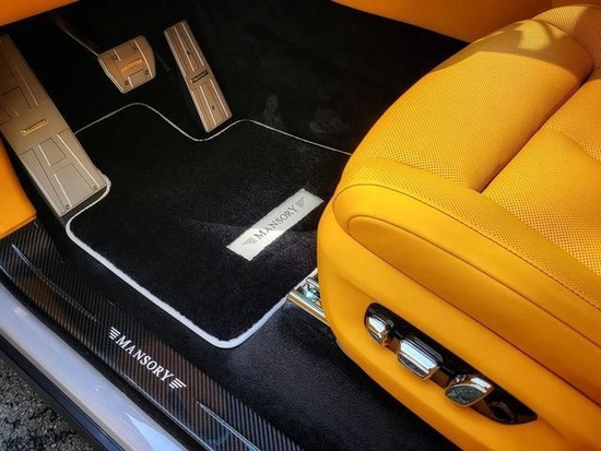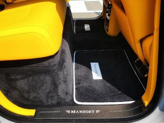不过,仔细触摸会发现,在前引擎盖,屁股部分多出,其实在英国白涂漆之下,是仅有钢铁三分之一重的家族高定温润细腻的碳纤材料,轮毂部分也是精挑细选的23英寸钻石银锻造轮毂,Mansory纤维飞翼悬浮盖,定制味十足!