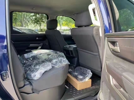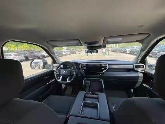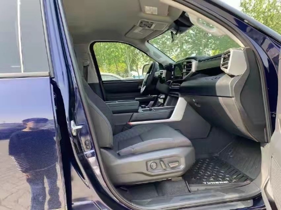 2022款新款丰田坦途3.5TT座椅提供有皮质包裹,整体的造型也非常宽大。在中央扶手区域的设计上也采用了非常方正的造型设计,并且可以看到前排的储物空间设计还是非常丰富的。