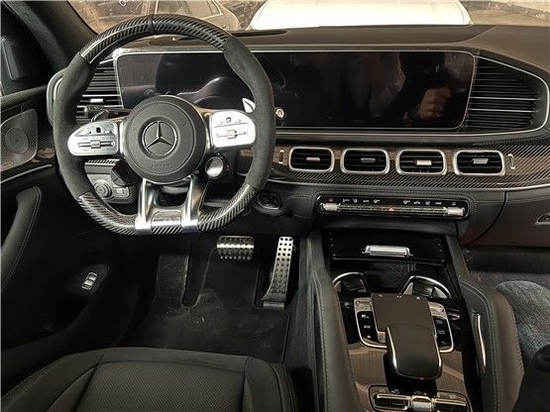 21款奔驰GLS63采用了AMG家族化的三幅式方向盘方向盘,方向盘的两侧采用了打孔装饰,看上去很有性能感并且很豪华。采用的是连体式大屏的设计,新车的中控台以及前侧地台上的面板装饰也很显豪华感。