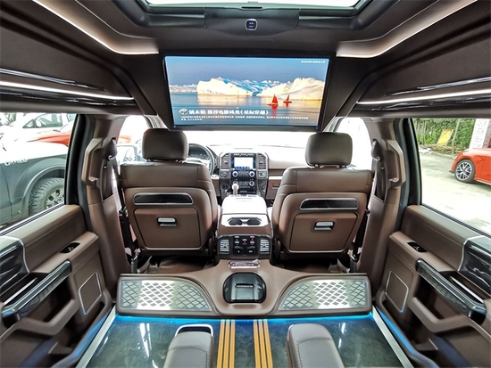 顶端半装修隔断的车载无线网络电视机,再相互配合顶端全景天窗和后侧的三色六宫格大灯紧密结合,配搭白车身的线框式车内氛围灯,突显整体车身的质感,也衬托了总体的气氛。顶端选用的一样是纳帕牛皮的覆盖,质感奢华性十足。总排名坐椅使用了二张带单独腿托的航空公司商务舱电动式按摩座椅,还能够左右电动式调整,超大型的规格产生了无可挑剔的车里室内空间,不但可以用于外事接待家中交通出行也十分功能强大。喜爱越野suv四处玩儿也没有问题。