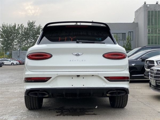 2022款宾利添越为了确保车主打开后备箱尾门取物的安全性,当尾门打开后,置于后保险杠上的示廓灯就会及时亮起,起到警示后方车辆的作用。牌照位置则下移到保险杠上,让上方的“Bentley”字样更加醒目。而更加宽大的椭圆形分体式排气管的造型与尾灯也是上下呼应。