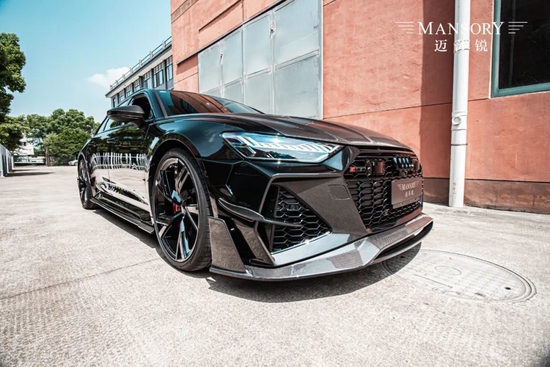 而RS6的成功转型,也激起了全球改装风格最另类奇特的“碳纤专家”——MANSORY迈莎锐的定制热情。最近在MANSORY迈莎锐·中国工厂,笔者有幸鉴赏到一辆通体曜石黑的MANSORY迈莎锐高定版奥迪RS6下线交车。当棱角分明的机械化前脸映入眼帘,若非看到车头那熟悉的“四环联盟”logo,笔者还以为出现在面前的是“野牛”Urus (配置|询价)!MANSORY迈莎锐引起的“画风”突变让RS6呈递出满满的未来科技氛围,笔者看后忍不住内心惊呼:哇噻~居然还能这么改?!