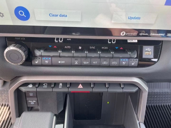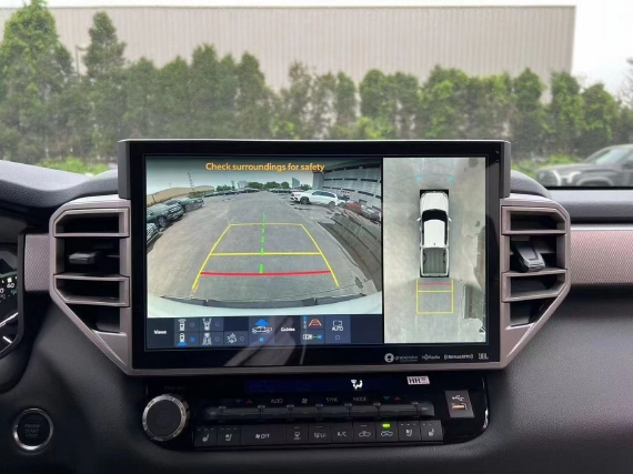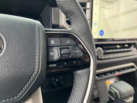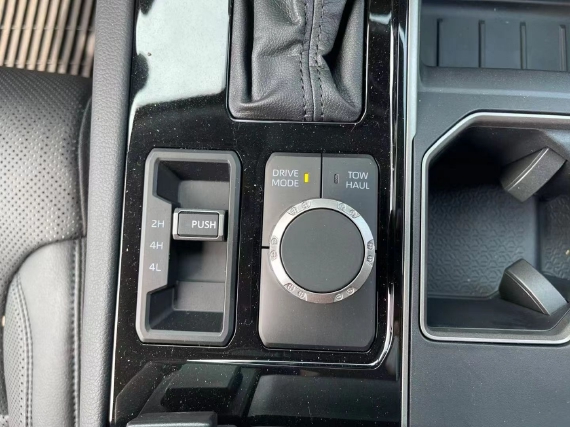22款丰田坦途座椅提供有皮质包裹,整体的造型也非常宽大,在中央扶手区域的设计上也采用了非常方正的造型设计,并且可以看到前排的储物空间设计还是非常丰富的。