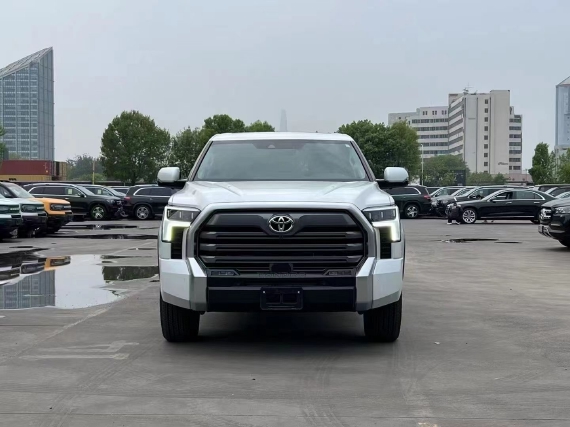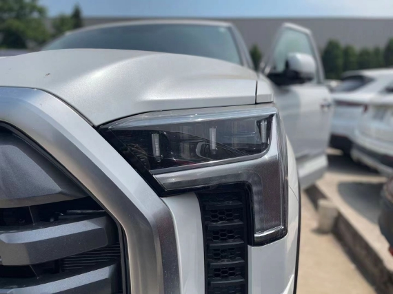 22款丰田坦途车身侧面,新坦途还是标准的皮卡线条设计,在前后轮眉上方采用了独立的线条设计来突显肌肉感,熏黑的A柱、B柱处理也让它的乘用舱看起来更长。同时在轮眉以及轮辋处也都采用了熏黑处理,视觉效果上更突出运动感。