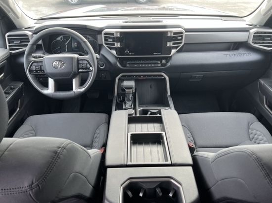 2022款新款丰田坦途3.5TT座椅提供有皮质包裹,整体的造型也非常宽大,在中央扶手区域的设计上也采用了非常方正的造型设计,并且可以看到前排的储物空间设计还是非常丰富的。