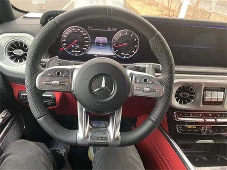 2021款奔驰G63豪华精致的真皮包覆提供了足够的舒适性和支撑性,通风和加热功能让乘客免受高温和寒冷的煎熬。中控台多处均采用碳纤维材料覆盖,带彩色TFT显示屏的AMG仪表盘、AMG主菜单和单独的挡位显示器以及采用白色照明的AMG门槛。名贵的选材及精湛的内装令人拍案叫绝。