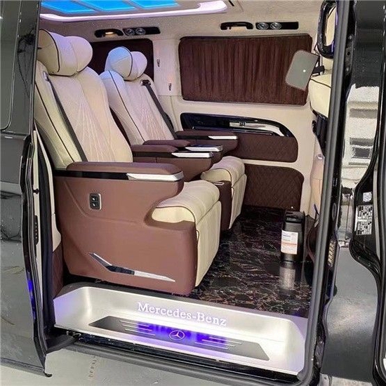 奔驰威霆改装案例汇总 全球最全定制案例、全车镀铬套件、LED迎宾踏板、LED灯饰及油漆同色,使整车更加尊贵霸气。奔驰威霆采用竹苞松茂的时尚窗帘,8偏向电动调治按摩航空座椅,座椅阁下的文娱节制中隔屏,车内电器可任意一键操纵,可开启式全景天窗,在浩大的夜景中,共同“满天星”格调,好像在豪华的宫殿。全新奔驰威霆2+2+3座椅陈列,也是商务车最为流行的座椅布局,第二排航空座椅,打孔真皮处置更透气,座椅透风、推拿赐与您更温馨的乘坐感触,更有360度扭转功用;奔驰7座商务车价位 奔驰威霆商务车无论是家庭出游照顾孩子、陪家人谈天,亦或是商务洽谈,都能让您随心所欲,第三排座椅打开,便可构成一张宽大温馨的沙发床,方便乘车人员休息。