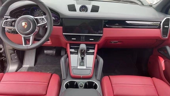 22款保时捷卡宴12.3英寸全高清触控屏可直观地控制各种数字功能,包括语音控制功能。下方按键整齐的排列在如同智能手机玻璃触控面板的表台上,操作时会发出声音以及震动反馈。保时捷卡宴方向盘上硕大的保时捷标志立于正中,鲜艳而夺目,盘辐上没有过多的按钮,两侧的换挡拨片散发着金属光泽。整个内饰充满科技感。