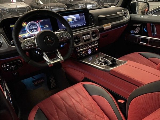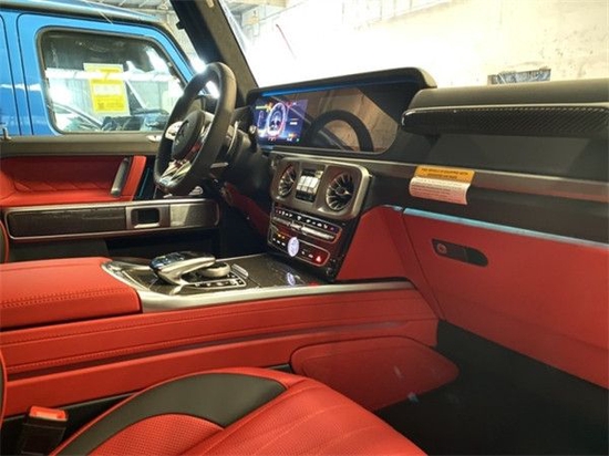 22款奔驰G63豪华精致的真皮包覆提供了足够的舒适性和支撑性,通风和加热功能让乘客免受高温和寒冷的煎熬。中控台多处均采用碳纤维材料覆盖,带彩色TFT显示屏的AMG仪表盘、AMG主菜单和单独的挡位显示器以及采用白色照明的AMG门槛。名贵的选材及精湛的内装令人拍案叫绝。