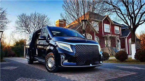 这款奔驰高顶商务车圣母峰全车定制了高顶扰流套件,全新圣殿星慕格栅立体感十足,314颗烫银电镀,阳光照耀下非常闪耀;18寸定制悬浮锻造轮毂非常帅气,轮胎尺寸为235/50R18,品牌型号为米其林静音轮胎。