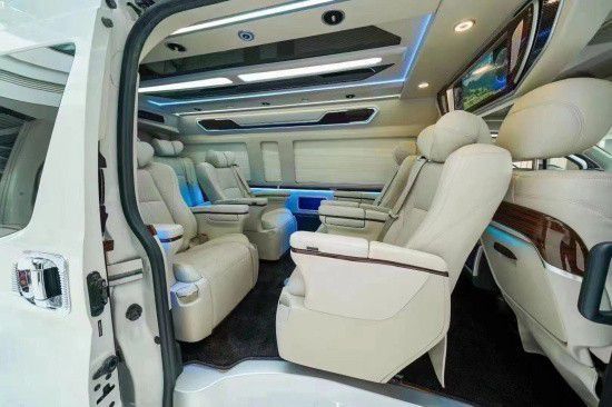 2021款丰田海狮9座商务车采用2+2+2+3四排九座的设计,第二排和第三排均配备了两个Ottoman航空座椅,比埃尔法要两张,第三排放一张三人座的沙发床,即宽敞又实用,这样的情况下后备箱还能垂直放下四套高尔夫球装备!除了空间优势外,豪华性方面真皮、木质以及烤漆饰板的加入使得新车的内饰更具豪华度,车顶的设计时尚、大气,装彩色航空顶灯,星空顶,流水灯充满着奢靡的味道,点亮后车内的氛围是其它商务车所不能比拟的,也是的丰田海狮在内饰的环境上展现出与众不同的色彩,家庭出游必备首选。
