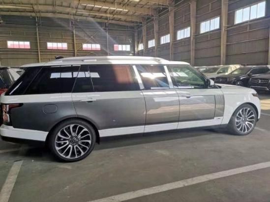 2022款新款路虎皇家一号5.98米加长版顶配商务车采用当下顶级奢华的双色车身,熏黑的LED大灯,机盖上的路虎字母无时不在的彰显着身份 ,这台前脸是标志性的揽胜 (配置|询价)的设计,仔细看你会发现端倪,22寸的锻造轮毂,一只就要几万,2000mm的车身高度,比普通揽胜高出131mm。