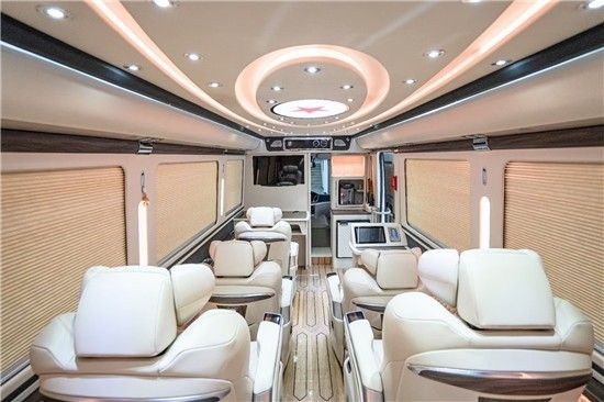 宇通T7 12座与考宇通T7 12座在内饰的改装上的相同之处也有很多,丰田考斯特改装商务车在内饰上的改装项目有很多。座椅,地毯,窗帘,冰箱,隔断,影音系统,办公桌,秘书席等等,内饰上的每一步哦我们都可以根据自己的需要进行设计,打造一款我们专属的私人高级座驾