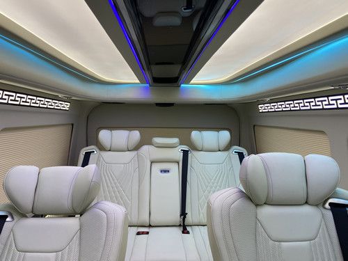 2022丰田7座海狮 2022款丰田海狮蓝牌C本多少钱丰田海狮皇冠版七座大型商务接待用车,车长五米915,宽一米九五,实测高度两米二,搭载的是3.5V6汽油版的发动机,皇冠的标识电动中门一键开启,车内两张阿尔法原装进口座椅,中间这个过道的宽度还是可以的,能过个人最起码后方这一块儿的空间特特别大啊。后方三连座椅放倒之后是一张床的状态,顶部有星空顶氛围灯,支持多种颜色渐变,前方还有一块超大的显示屏幕,支持播放电影,播放音乐。把它打开给大家看一下啊。这里还有一个小吧台,下方保温壶电视正在开启,华为的。