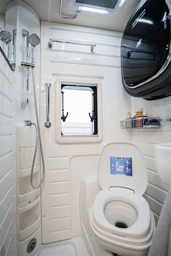 宇通C535双拓展旗舰版房车内部的卫生间,采用独立一体式设计,空间虽小,但功能设施齐全,包括有集便式马桶、淋浴花洒、毛巾杆、浴室镜、手纸盒、卫浴帘、洗手盆、吊柜、牙杯架等。同时搭配置折叠式晾衣架暖风出风口、双向换气扇,更加迅速地将衣服晾干。房车旅行可以让自己放松心情,宽阔自己的心境,忘掉不顺心的事,迎接新的开心。旅行大概就是在寻找新的美丽,追逐新的感观世界,丢掉多余的自己,遇上最真实的自己;让宇通C535旗舰版双拓展房车待你去寻找最真实的自己吧!好了本款宇通C535旗舰版双拓展房车小峰哥就同大家介绍到这里。阅览世间美好,带您跨越山河,品味人间烟火,给您一个移动的家 -我是小峰哥