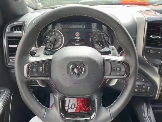 新车在内饰部分进一步强化了其高性能版本的形象,中控台和座椅随处可见的TRX标识便是最好的例证。)同时,作为道奇家族的旗舰车型,新车还配备了12英寸竖置中控屏幕,除了支持蓝牙、导航和车载Wi-Fi等常见功能,还支持Apple CarPlay和Android Auto手机映射。