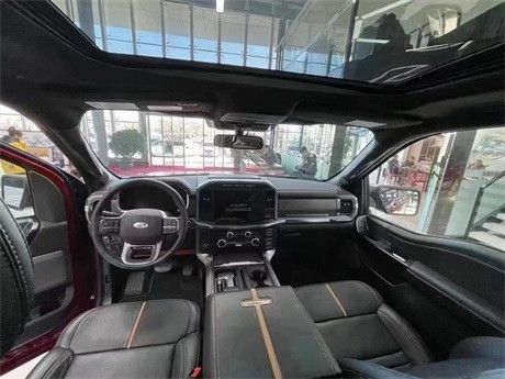 2022款全新福特F150 (配置|询价)XLT版内饰采用独特的中控台和门饰板面漆和真皮包裹的方向盘,中控台部分辅以银色饰板装饰,六指针仪表盘的设计有些后工业时代的复古风格,采用带电冷热功能的可记忆式皮革座椅,头枕四向可调,搭配铝饰条和黑色钢琴烤漆内饰可电动升降的后窗带隔板和电热除霜功能。