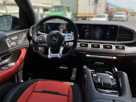 2022款奔驰GLE53依旧延续了运动型AMG的主题,乍一看,你可能会被众多对比的红色缝线所震撼,它隶属于新车的一个可选配置包,不仅是缝线,包括方向盘上也增加了红色的中心标记(就像你在一些赛车中看到的那样)和红色安全带等等。另外,它的内饰还采用了大量的碳纤维材料,让它进一步散发出浓郁的运动与舒适感。