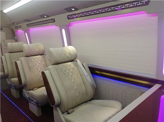 丰田考斯特14座15座改装商务车,在内饰的设计上才是我们真正能够欣赏到的地方,丰田考斯特改装商务车内饰的设计上更加注重色彩的搭配,所以丰田考斯特14座15座改装商务车在内饰额装饰或者是窗帘以及地毯的选择上都能够充分考虑色彩搭配的合理性。丰田考斯特改装商务车,在窗帘的选择上可以有这样两种选择,一种是优雅的布艺窗帘,另一类是端庄大气的百褶窗帘,丰田考斯特改装商务车通道地毯以及游艇木地毯虽然是不同风格的设计,但是却同样可以带给我们舒适的享受,这一切是丰田丰田考斯特14座15座改装商务车的独特之处。