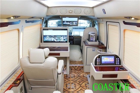 高2.774米时,丰田考斯特在外观细节上加了颜色,镀铬前设计,以及车身颜色中心线,丰田考斯特改变了造型,抓住点缀不会使高大的商用车显得单调笨拙。从实际的角度来看,丰田考斯特的改装商务车充分考虑了改装商用车作为商业用途基本的优势。丰田考斯特改装商用车可以根据自己的需要完成我们的私人定制。丰田考斯特改装的商用车,在座椅设计上可以从10到23个座位不等,无论我们在哪个领域使用,丰田考斯特改装的商用车都能满足我们的需求。丰田考斯特改装的商务车,除了可以选择的座位数量外,还可以选择材质的座椅。豪华皮革座椅,旋转头部座椅,以及原进口埃尔法 (配置|询价)座椅,丰田考斯特改装可满足我们对商用车的需求。丰田考斯特改装商务车舒适座椅均配有高端办公桌。