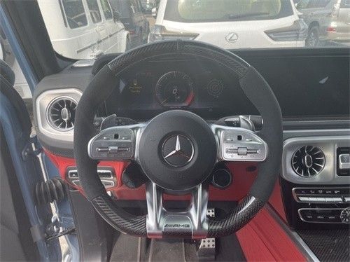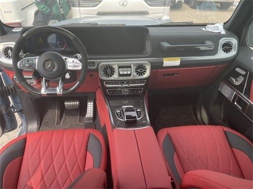 22款全新G63内饰方面,新G63保留了新G500的整体设计,除配色差异外,新车还换装了全新造型的平底式运动方向盘,其两侧配以打孔皮质包裹,下部镀铬装饰的造型也与新G 500明显不同,看上去十分战斗。此外,全液晶仪表盘+中控大屏的双12.3英寸屏幕设计在新车上也没有缺席,营造出了浓郁的科技感。