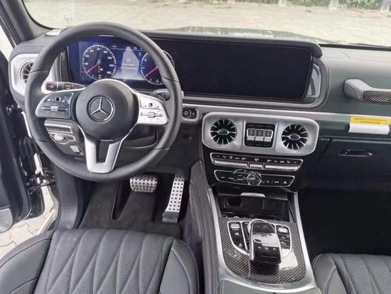 22款奔驰G550卓越的品质和精致的工艺在车内体现得淋漓尽致,奔驰G级 (配置|询价)对细节的精益求精是重要原则。车内采用深色调与碳纤维装饰,真皮运动座椅极具舒适性,方向盘以高档真皮包裹装饰,触感极其细腻。配有碳纤维装饰的操控台,稳重大气,同时提高了整体的档次观感。各种功能按钮应有尽有,丝毫不次于豪华轿车。
