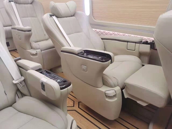 进口埃尔法 (配置|询价)顶配航空座椅,座椅不但舒适而且具有很多实用功能,比如座椅加热、座椅通风、座椅记忆、脚拖(有二级脚拖)、烟灰缸、折叠隐藏式书桌。华通丰业 在内饰大的设计上增加了隔断的设计。
