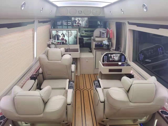 丰田考斯特,出厂之时,内饰简单,简单的座椅,简单地装置,跟豪华的商务车基本上没有什么联系。但是考斯特商务车却在设计师鬼斧神差的技术下展现出与众不同的气质,华通丰业成为最受欢迎的改装商务车。考斯特12座该增长之前,虽然有着很大的乘坐空间,然而却给人一种空旷的感觉,不适合作为商务用车或者政府接待用车。