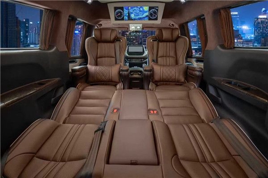 跟其他的MPV一样属于一个7座的双布局,2+2+3的动态,同样,跟市面上的多数改装车一样,他也是做了一个全面的空间改装,整车包覆,进口的柚木地板,半隔断的电视机连接无线,驾驶舱的中控扶手冰箱,顶部,座椅……分区块来看,每一个都值得拿出来说一说。--180---1775---1185