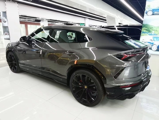 中规版22款兰博基尼Urus的尾部完美承袭了兰博基尼复杂而强劲的线条设计。整个尾部由相连的黑色面板包覆进气格栅、兰博基尼LOGO和Y字形尾灯,与后翼子板共同组成。后扩散器的设计灵感源于兰博基尼赛车,设有两组圆形排气管,支持全国分期购车。