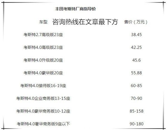 丰田考斯特12座 北京华通丰业丰田考斯特授权店丰田柯斯达 (配置|询价)/考斯特【7座】【8座】【9座】【10座】【11座】【12座】【13座】【14座】【15座】【16座】【17座】【18座】【19座】【20座】 ◤丰田考斯特◢销售改装10座(至尊版)11座(奢华版、旗舰版、VIP版)12座(奢华版、旗舰版、VIP版)13座(VIP版、超VIP尊贵版)。购车咨询电话:13901036576 魏经理 同微信