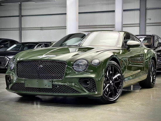 欧版 21款 宾利 欧陆 (配置|询价) GTV8 炫黑套件颜色:英国骑士绿/鲸鱼黑/鲸鱼黑木饰:高亮碳纤维(D方案)满配天津港现车 售全国选装配置:#深湾壹号 LUXURYCARS# Mulliner定制 - 纯色漆/金属外漆Mulliner驾驶配置配黑色喷漆铝合金轮毂-仅欧陆炫黑套件适用(22英寸开放式黑色喷漆轮毂,颜色配置,菱形格纹座椅、门板及后座,座椅刺绣宾利徽章,金属油箱盖,运动踏板)旅游配置(自适应定速巡航控制系统,宾利安全装置 PLUS,平视显示器,车道辅助功能,交通辅助功能)城市配置(自动防眩目反光镜,城市助手,感控后备箱开门,行人警示功能,倒车警报,全景摄像头,交通标示辨认功能)欧陆炫黑套件(亮黑车门拉手嵌件,亮黑前灯边框,亮黑车门饰条,亮黑后保险杠边框,亮黑后灯边框,亮黑后车牌边框,亮黑车门玻璃边框,亮黑尾气管,亮黑“飞翼 B”形翼子板进气口,亮黑前防撞杆格栅和边框)单面面板-高亮碳纤维前座舒适座椅配置3辐式单色加热真皮镶边方向盘宾利动态驾驶系统Mulliner LED 迎宾灯空气净化器遥控车库门开启器 Bang & Olufsen宾利专属音响