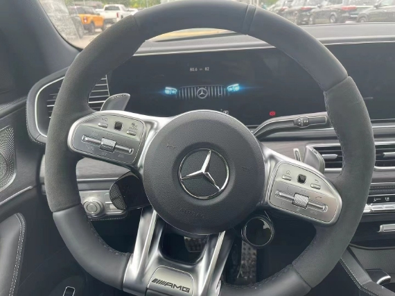 奔驰GLE (配置|询价)53 AMG高性能方向盘 AMG高性能方向盘由黑色Nappa皮革包覆,将多功能、高品质触感和完美人体工程学设计融于一体。 方向盘还带有AMG Drive Unit操控单元,让驾驶者得以快速准确地操作各种动态驾驶功能。不但有利于提高驾驶时的专注力,还可以带来十足的驾驶操控感。