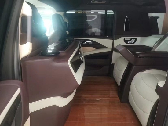 新款凯迪拉克总统一号桌椅设置操控屏,简单方便,扶手台影藏一个简约的储物柜。奢华游艇木地板,有种复古格调凯迪拉克总统一号凯迪拉克总统一号让你在商务谈判中更胜一筹,全车采用真皮包裹拥有透气性、电动按摩及电动加热系统,保证整了质感的同时也保证了座椅的舒适性。