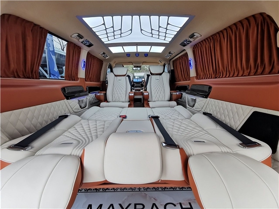 改装后奔驰奔驰威霆还是坚持2+2+3的布局,奔驰威霆在内饰改装方面,选择皮革,复合海绵座垫,超细纤维皮革,高密度碳纤材料以及其他装饰材料来升级驾驶舱。奔驰威霆的乘客舱皮革覆盖了整车的墙壁,超细纤维皮革加反绒包覆的车顶,高光镜面亚克力迈巴赫地板和多功能头等舱航空座椅,从视觉到触觉,整个乘车环境和体验都非常舒适和精致。了解更多详情