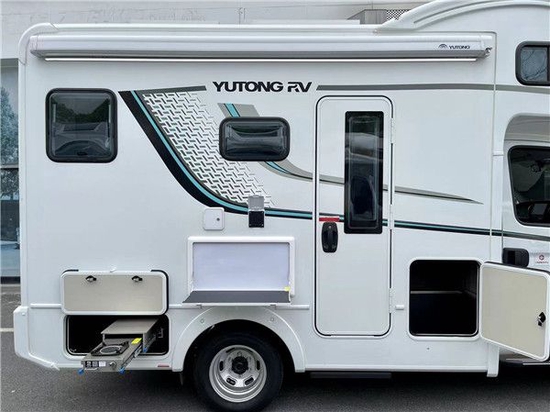 今天小编就为大家推荐一款宇通C530式房车,将宇通一些比较好的设计理念、工艺科技、内外配置等很好地融入其中,是宇通C型房车中的一款不可多得的豪华产品。从外观来看,房车的尺寸为5990X2530X3199,是一辆双拓展式的房车。这款房车以白色为主基调,表面装饰有墨绿色和浅绿色两种颜色的拉花装饰,一直延伸到车头部分,看起来十分灵动;额头的弧度十分优美圆润,还能很好地避免行驶过程中空气阻力的影响。