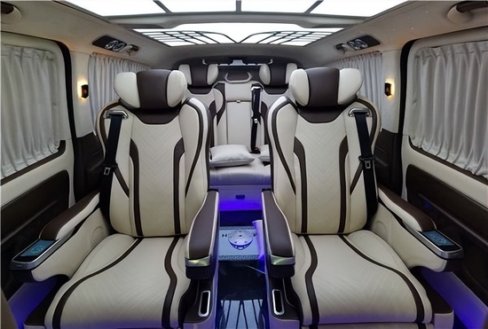 奔驰威霆贵宾舱中令人注重的部分座椅,奔驰威霆商务车采用航空级总裁专座,座椅由与内饰同色的柔软真皮包覆,温馨性可见一斑,座椅自带多种人性化功用,例如通风加热,气动可谓功用强大,更具有姿势记忆功用,让座椅自行“记住”你喜欢的姿势。在忙碌的工作之余,能够有这样的座椅可以让你获取短暂有效的支持以及实质的蓄锐。